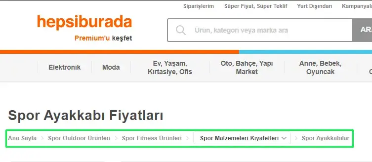Örneğin, bir kullanıcı bir e-ticaret sitesinde ayakkabı bölümünden bir çeşit spor ayakkabıya ulaşmak istediğinde, breadcrumb ona adım adım yol gösterir. “Ana Sayfa > Spor Outdoor Ürünleri > Spor Fitness Ürünleri > Spor Malzemeleri Kıyafetleri > Spor Ayakkabıları” gibi bir breadcrumb yapısı, kullanıcının bulunduğu konumu net bir şekilde gösterir. Bu sayede kullanıcılar, istedikleri ürüne birkaç tıklama ile ulaşabilirler.